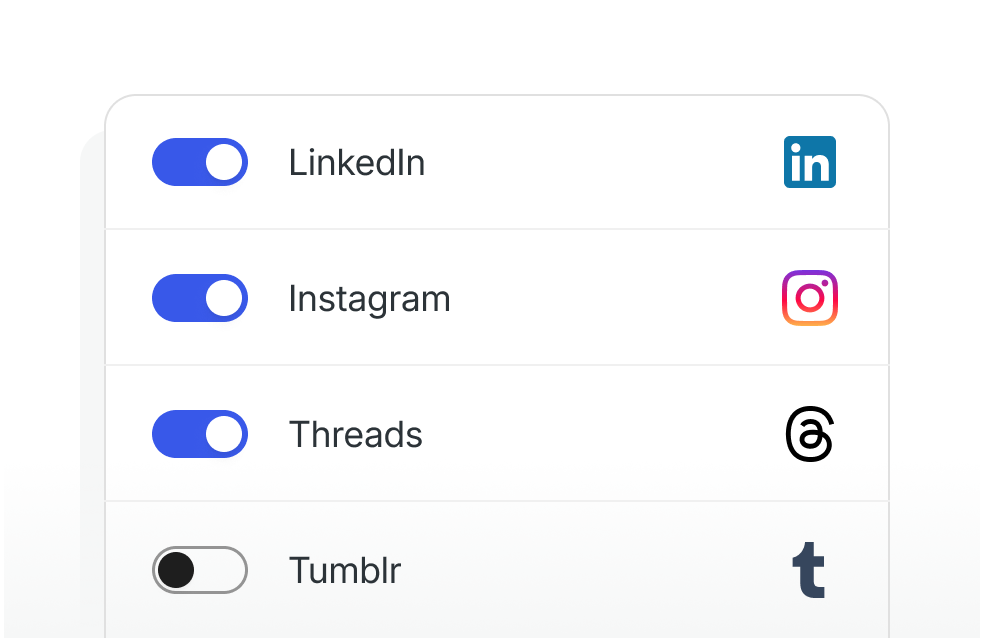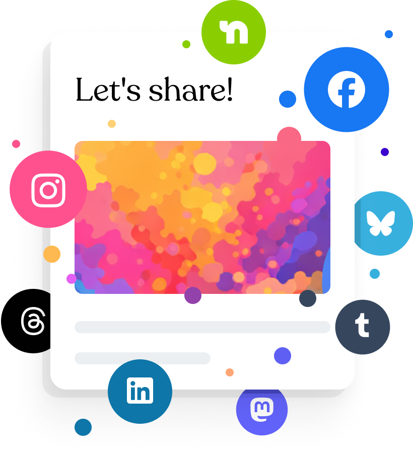 - Post to Facebook, Instagram, Threads, Bluesky, LinkedIn, Mastodon, Nextdoor & Tumblr
