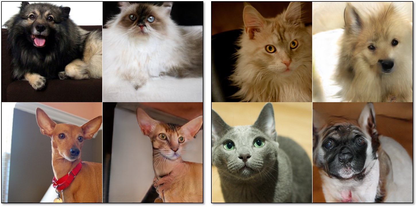 itok_msi produced cats ↔ dogs CycleGAN results with a local+global discriminator and a smaller cycle loss. |