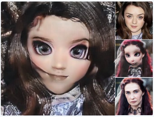 Mario Klingemann used our code to translate portraits into dollface. See how the characters in Game of Thrones look like in the doll world. |