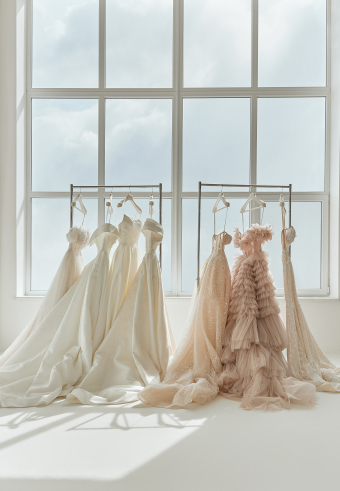Всі сукні виготовляються вручну з використанням високоякісних європейських тканин, французького мережива, італійської вишивки та аплікацій. Від класичних суконь з мінімалістичним дизайном до сміливих комбінацій тканин, крою та декору — кожна наречена знайде щось для себе.