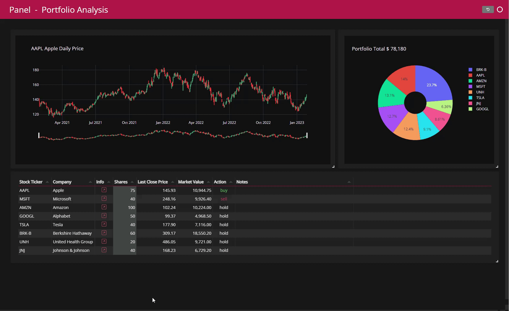 The Portfolio Analysis App demonstrates the powerful Tabulator table that ships with Panel.