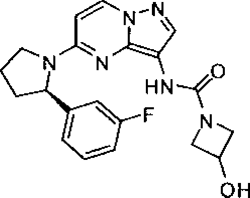 - PUORYNRUUZSIDM-UHFFFAOYSA-N 5-[2-(2,5-difluorophenyl)pyrrolidin-1-yl]-1H-pyrazole Chemical compound FC1=CC(C2CCCN2C2=CC=NN2)=C(F)C=C1 PUORYNRUUZSIDM-UHFFFAOYSA-N 0.000 claims description 99