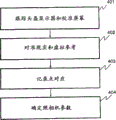 头盔跟踪照相机的情况的备选情况是,外部跟踪装置可以与相对于照明器牢固固定的头盔标记或传感器共同使用。跟踪系统跟踪HMD和校准屏幕(401)。同样,校准光点的3D坐标可被对准(402),并可被确定为光束和屏幕平面的交叉点(403)。虚拟参考点对准屏幕上显示为光的现实参考点,并且记录对应(404)。As an alternative to the case of a helmet tracking camera, an external tracking device could be used with helmet markers or sensors fixedly fixed relative to the illuminators. The tracking system tracks the HMD and calibrates the screen (401). Likewise, the 3D coordinates of the calibration spot can be aligned (402) and can be determined as the intersection of the beam and the screen plane (403). The virtual reference point is aligned with the real reference point displayed as light on the screen, and the correspondence is recorded (404).