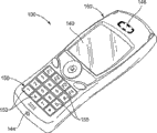图9和10描述的是本发明的第三实施例。在图9和10所示的第三实施例中,小键盘150包含了用于显示虚拟按键152的触敏显示器。在这个实施例中,以可以在第一方向查看小键盘150的操作方式来显示第一按键图像,而第二小键盘图像是在相机电话处于可以在第二方向查看小键盘150的操作模式时显示的。用于不同操作模式的小键盘图像可以存储在存储器124中,并且可以在微处理器122的控制下显示。例如,当相机电话100处于通信操作模式时,微处理器122可以向触敏屏幕发送第一小键盘图像,在所述图像中,按键152以及相关联标记153的取向适于在第一方向查看。当相机电话100处于相机模式时,微处理器122可以向触敏显示器发送第二小键盘图像,在所述图像中,按键和相关标记155的取向适于在第二方向查看。此外,在本发明的这个实施例中,并未限制可以显示的小键盘图像数目和/或取向。9 and 10 illustrate a third embodiment of the present invention. In a third embodiment shown in FIGS. 9 and 10 ,
