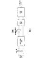 The low frequency rlc circuit model that comprises the system of a modulator-demodulator (as modulator-demodulator 300) and a telephone line (as circuit 370), as shown in Figure 4.The resonance frequency of this rlc circuit model (it is general corresponding with the peak value of transfer function) is the function of telephone line length.In the present embodiment, L is the inductance of the elementary or modem side of transformer (as transformer 360), and R is the input impedance of AFE (analog front end) (as AFE 340), R