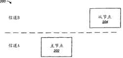 Fig. 2 shows the embodiment of wireless network 200, wherein, connecting and during Remote configuration, host node 202 with reside at first on the different channels from node 204.In the embodiment of Fig. 2, host node 202 resides on the channel A, and resides on the channel B from node 204, and it can be their basic channel separately.Therefore, host node 202 under the situation of switching channels not can not with communicate by letter from node 204.In order to realize purpose of the present disclosure, set host node 202 and told from the channel of node 204.Yet, should be appreciated that, can provide from the channel of node 204 to host node 202 by user interface or other discovery system or method (for example, these can be the same procedure that is used for determining from the MAC Address of node).