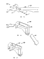 在另一方面,缝合设备包括棘轮,除非可靠地失效,棘轮锁定。在优选实施例中,这种缝合设备包括近端手柄和具有远端的细槽远端轴;靠近远端定位的抓握机构,抓握机构包括顶部爪和底部爪,至少一个顶部爪和底部爪在靠近远端的位置处铰接在轴上,以便在开启位置和闭合位置之间运动;将抓握机构可操作地连接在手柄上以便在远端处相对地开启和闭合顶部爪和底部爪的爪运动机构;将抓握机构偏压到开启位置的弹簧;以及除非采取可靠措施以便使得棘轮锁栓组件失效,防止爪运动机构朝着开启位置运动的棘轮锁栓组件。In another aspect, the suturing device includes a ratchet that locks unless reliably disabled. In a preferred embodiment, the suturing device includes a proximal handle and a slotted distal shaft having a distal end; a gripping mechanism located near the distal end, the gripping mechanism comprising top and bottom jaws, at least one top jaw and a bottom The jaws are hinged on the shaft near the distal end for movement between open and closed positions; a gripping mechanism is operably connected to the handle to relatively open and close the top and bottom jaws at the distal end a pawl movement mechanism; a spring biasing the gripping mechanism to the open position; and a ratchet latch assembly preventing movement of the pawl movement mechanism toward the open position unless reliable steps are taken to disable the ratchet latch assembly.