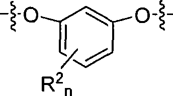 R is an aryl in the formula, and it comprises carbon-to-carbon singly-bound, carbon-oxygen-carbon bond or carbon-to-carbon and carbon-oxygen-carbon single bond, the main polymer chain of described singly-bound component part.