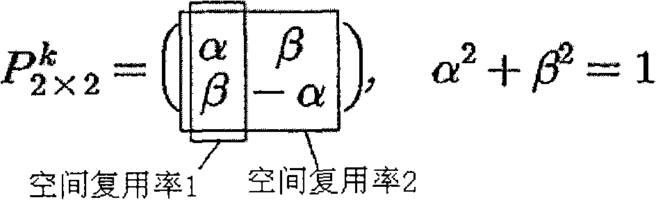 并且,发射功率分配预编码可以通过与Nt×Nt酉矩阵(Nt是多个天线的数目)相乘而被执行。并且,Nt×Nt酉矩阵可以与具有相位值作为变量的对角矩阵相乘。并且,Nt×Nt酉矩阵和对角矩阵至少之一可以是时变元素。And, transmit power allocation precoding may be performed by multiplying with an N t ×N t unitary matrix (N t is the number of multiple antennas). And, the N t ×N t unitary matrix may be multiplied with a diagonal matrix having a phase value as a variable. And, at least one of the N t ×N t unitary matrix and the diagonal matrix may be a time-varying element.