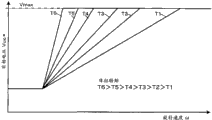 (3)在上述(1)或(2)所述的电动机控制装置中,上述次级侧目标电压决定单元(图3的5),基于针对上述电动机的每个目标转矩(T*)的次级侧目标电压特性,决定上述次级侧目标电压(Vuc*m),该次级侧目标电压特性是:在上述第一区域(图4),随着上述电动机的旋转速度的上升以第一斜率(k1)上升;在上述第三区域,在上述电动机的旋转速度为开始弱磁控制的第一旋转速度(ω1)以上时以与第一斜率(k1)不同的第三斜率(k3)上升;在上述第二区域,在上述电动机的旋转速度为切换至上述1pulse模式的第三旋转速度(ω2)以上时以与第三斜率不同的第二斜率(k2)上升。(3) In the motor control device described in the above (1) or (2), the secondary side target voltage determining means (5 in FIG. 3 ) is based on The secondary side target voltage characteristic determines the above secondary side target voltage (Vuc*m). A slope (k1) rises; in the above-mentioned third region, when the rotation speed of the above-mentioned motor is higher than the first rotation speed (ω1) at which field weakening control starts, a third slope (k3) different from the first slope (k1) is used Rise: in the second region, when the rotation speed of the motor is equal to or higher than the third rotation speed (ω2) for switching to the 1pulse mode, it rises with a second slope (k2) different from the third slope.