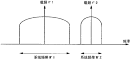 图21是表示现有无线通信系统中使用的频带的其他一例的图。在图21中,横轴表示频率。在图21中,基站装置和移动站装置使用在频率方向不连续的多个频带W21、W22进行通信。如图21所示,将复合地使用频率方向上不连续的多个频带的情况称为聚合(aggregation)。FIG. 21 is a diagram showing another example of frequency bands used in a conventional wireless communication system. In FIG. 21, the horizontal axis represents frequency. In FIG. 21 , the base station apparatus and the mobile station apparatus communicate using a plurality of frequency bands W21 and W22 that are discontinuous in the frequency direction. As shown in FIG. 21 , the case where multiple frequency bands that are discontinuous in the frequency direction are used in combination is called aggregation (aggregation).