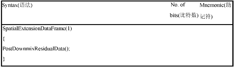 目前,可以有效压缩音频客体信号的基于客体的音频编码技术是人们关注的焦点。用于支持现有运动图像专家组(MPEG)环绕技术的任意降混信号的参数的量化/反量化体系(scheme),可提取任意降混信号和编码器的降混信号之间的频道水平差异CLD(Channel Level Difference)参数。此外,量化/反量化体系可使用以在MPEG环绕体系中的0dB为基准设计得心对称的CLD量化表,来执行量化/反量化步聚。At present, the object-based audio coding technology that can effectively compress the audio object signal is the focus of attention. Quantization/inverse quantization scheme for parameters of arbitrary downmix signals supporting existing Motion Picture Experts Group (MPEG) Surround technology to extract channel-level differences between arbitrary downmix signals and encoder's downmix signals CLD (Channel Level Difference) parameter. In addition, the quantization/dequantization system can use a symmetrical CLD quantization table designed with 0dB in the MPEG Surround system as a reference to perform quantization/dequantization steps.