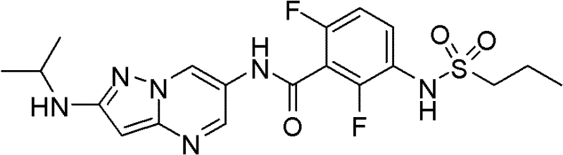 Raf/MEK/ERK通路对于细胞存活、生长、增殖和肿瘤发生而言是关键性的。Li,Nanxin等“B-Raf kinase inhibitors for cancer treatment.”Current Opinion in Investigational Drugs.第8卷,第6期(2007):452-456。Raf激酶存在三种同工型,A-Raf、B-Raf和C-Raf。在这三种同工型中,研究显示B-Raf起主要的MEK激活剂的作用。B-Raf是人类癌症中最常突变的基因之一。B-Raf激酶代表了用于基于临床前靶标确认、流行病学和成药性的抗癌治疗的一种优良靶标。The Raf/MEK/ERK pathway is critical for cell survival, growth, proliferation and tumorigenesis. Li, Nanxin et al. "B-Raf kinase inhibitors for cancer treatment." Current Opinion in Investigational Drugs . Vol. 8, No. 6 (2007): 452-456. Raf kinase exists in three isoforms, A-Raf, B-Raf and C-Raf. Of these three isoforms, studies have shown that B-Raf functions as a major MEK activator. B-Raf is one of the most frequently mutated genes in human cancers. B-Raf kinase represents an excellent target for anticancer therapy based on preclinical target validation, epidemiology and druggability.