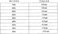 图5示出根据一个实施例的用于将端口占空比与平均压力差相关联的查询表的实施例;和5 illustrates an embodiment of a look-up table for associating port duty cycles with average differential pressures, according to one embodiment; and