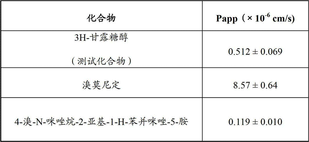 化合物4-溴-N-咪唑烷-2-亚基-1-H-苯并咪唑-5-胺可以根据美国专利第6,495,583B1号的公开内容制备,该专利的全部公开内容据此以引用的方式并入本文。Acheampong等已在Xenobiotica,2007年2月,37(2)卷,第205-220页中证明,在施用口服剂量的酒石酸溴莫尼定后在大鼠的尿中发现微量的这种化合物。Compound 4-bromo-N-imidazolidine-2-ylidene-1-H-benzimidazol-5-amine can be prepared according to the disclosure of U.S. Patent No. 6,495,583 B1, the entire disclosure of which is hereby incorporated by reference way incorporated into this article. Acheampong et al. have demonstrated in Xenobiotica, Feb. 2007, Vol. 37(2), pp. 205-220, that trace amounts of this compound were found in the urine of rats after administration of oral doses of brimonidine tartrate.