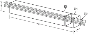 图27是图26的光纤电缆路由区域的正面立体图,示出了光导纤维横穿过在光纤电缆路由区域中切割的一个增量式截面(incrementalsection)。Fig. 27 is a front perspective view of the fiber optic cable routing area of Fig. 26, showing optical fibers traversing an incremental section cut in the fiber optic cable routing area.