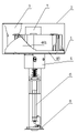 Such as Fig. 1, Fig. 2 and shown in Figure 3, this card machine comprises frame 1, be arranged on table top 2 on the frame, connect board device 3, mahjong piece feeding mechanism 4, tile arranging mechanism 5, card bearing board F, lifting body 6 and card-sending mechanism 7.Connecing the board device is a funnel; Opening larger on the funnel is for connecing the board mouth, and the less opening in funnel lower end is mahjong pieces outlet.Connect the board mouth and be connected with table top 2, mahjong pieces outlet is corresponding with the board road 41 that is arranged in the mahjong piece feeding mechanism, connects the board device playing card at random on the table top of card machine are picked on the board road to the mahjong piece feeding mechanism; Mahjong piece feeding mechanism is connected with tile arranging mechanism, delivers to tile arranging mechanism after the board limit of playing card at random is finished; Tile arranging mechanism is connected with card bearing board, the operation and washed playing card are stacked on the card bearing board of shuffling; Card-sending mechanism is arranged at the table top below of card machine Height Adjustablely and is provided with downward piece inlet 71, and this piece inlet is positioned at the card bearing board top.Lifting body and card bearing board and card-sending mechanism are connected respectively, drive card bearing board and move up and down and drive card-sending mechanism expose or sink to table top in card machine in frame.The below elaborates to each above-mentioned mechanism.