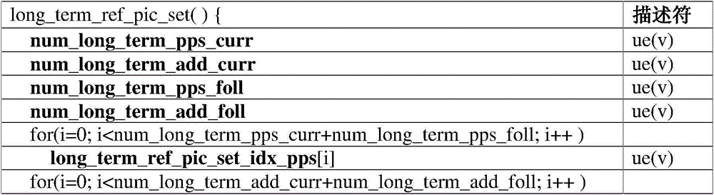 For instance, RefPicSetLtCurr reference picture subset can comprise the identifying information that (and can only comprise) meets all long term reference images of following situation: can be for reference for the inter prediction at present image potentially, and can be for reference for the inter prediction of the image of one or more after present image on decoding order potentially.RefPicSetLtFoll reference picture subset can comprise the identifying information that (and can only comprise) meets all long term reference images of following situation: can be for reference for the inter prediction of the image of one or more after present image on decoding order potentially, and cannot be used at the inter prediction of present image for reference.