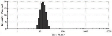 图6:HPV6 L1五聚体的动态光散射观测结果。结果显示五聚体的粒径直径为12.89nM,粒度分布PdI为 0.058。Figure 6: Dynamic light scattering observations of the HPV6 L1 pentamer. The results show that the particle diameter of the pentamer is 12.89nM, and the particle size distribution PdI is 0.058.