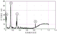 Fig. 12 shows the low coherence tomographic signal as shown in fig. 9, but without the presence of back-scattering material.