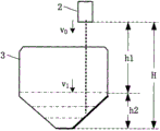 图5示意了物料下落过程中料位落差与落料速度对计量斗冲击的变化,物料以初速度v0从下料阀2中落下,下料阀2出口与计量斗3底部的距离为H,随着计量斗中料位h2的增加,空中落差h1将变小。Figure 5 shows the change of the impact of the material level drop and the blanking speed on the weighing hopper during the material falling process. The material falls from the feeding
