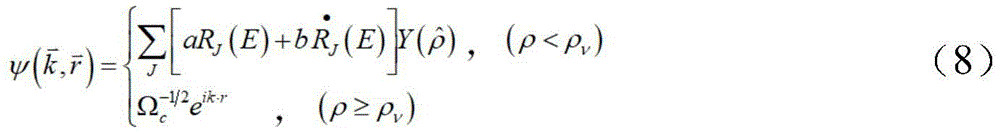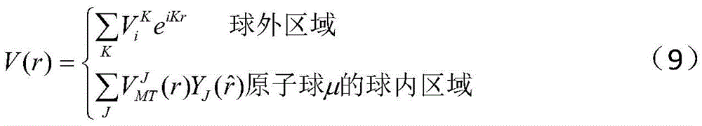 wherein, MT expresses the area in the sphere, constructs a Hamiltonian matrix and an overlapping matrix through a formula (9), substitutes a formula (6) to solve a wave basis function, and obtains the wave basis functions under different total moment of momentum J, namely: