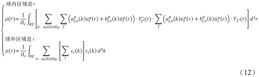 on the basis of the wave basis function of formula (8) in the linear affixation plane wave method, when the effective potential and the charge density of the external force are processed, the limitation of the shape of the potential is improved, and a correction term is added in a gap areaNamely:
