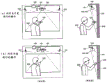 为了检测以影像的显示面作为操作面而用户进行的操作,已知有用户使用电子笔等进行操作并根据电子笔的发光位置检测操作位置的方法。另外,已知有根据用户的手指、手的影子检测它们的位置的方法。在专利文献1中,记载了能够应对用户操作的操作对象物(操作对象)为电子笔的情况和为用户的手指、手的情况这两方的操作检测装置。即,该文献记载的操作检测装置构成为具有:第1检测部,进行用于检测前端发光的第1操作对象与操作面相接的位置的第1检测处理;以及第2检测部,进行用于对操作面照射照明光来检测不发光的第2操作对象与操作面相接的位置的、与上述第1检测处理不同的第2检测处理。In order to detect the operation performed by the user using the display surface of the video as the operation surface, there is known a method in which the user performs an operation using an electronic pen or the like and detects the operation position from the light emission position of the electronic pen. In addition, there is known a method of detecting the positions of the user's fingers and hand shadows. Patent Document 1 describes an operation detection device capable of handling both the case where the operation object (operation object) operated by the user is an electronic pen and the user's finger and hand. That is, the operation detection device described in this document is configured to include a first detection unit that performs a first detection process for detecting a position where a first operation object whose tip emits light is in contact with the operation surface, and a second detection unit that performs a The second detection process, which is different from the first detection process described above, is a second detection process that detects the position where the non-emitting second operation object is in contact with the operation surface by irradiating the operation surface with illumination light.
