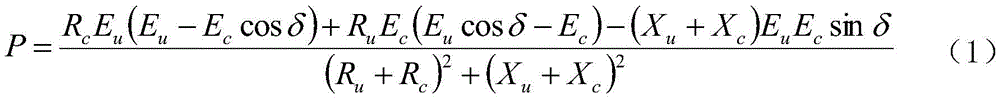 wherein E isuIs the system side equivalent harmonic source electromotive force amplitude, RuAnd XuIs the system side equivalent harmonic resistance and reactance, EcIs the electromotive force amplitude of the equivalent harmonic source on the load side, RcAnd XcThe phase difference is the relative phase difference between the load-side equivalent harmonic source electromotive force and the system-side harmonic source electromotive force.