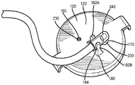 As shown in fig. 2 and 3, the top cover 120 includes a vent 160 through which air may pass bi-directionally during plasma collection 100 and an inlet aperture 170 through which plasma may be transferred into the plasma container 100. The size of the vent 160 and inlet aperture 170 may vary depending on the application, however, in some embodiments, the inlet aperture 170 may be much larger than the vent 160. Additionally, the top cover 120 may include a retainer 180 extending from the top surface 122 of the top cover. As discussed in more detail below, the retainer 180 may be used to secure a blunt cannula (which in turn is used to transfer plasma into the container 100) to the cap 120 of the plasma container 100 while plasma is being collected within the container 100. The retainer 180 may be any number of components capable of securing a blunt cannula. For example, retainer 180 may be a clip having two proximally extending projections 182A/B that define a space 184 therebetween in which a cannula may be positioned. In such an embodiment, the user may push the cannula into retainer/clip 180 until the cannula snaps/snaps into space 184. To hold the cannula in place within the clip 180, the protrusions 182A/B may include inward projections 183A/B that extend over the cannula when the cannula is positioned within the space 184.