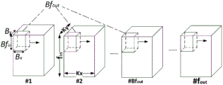 sliding the sliding window along the direction of Bfin according to a step length Sfin, or sliding along the direction of Bfout according to the step length Sfout, or sliding along the direction of Bx according to the step length S, or sliding along the direction of By according to a step length Sy, wherein Sfin is an integer which is greater than 0 and less than or equal to Bfin, Sfout is an integer which is greater than 0 and less than or equal to Bfout, Sx is an integer which is greater than 0 and less than or equal to Bx, and Sy is an integer which is greater than 0 and less than or equal to By;