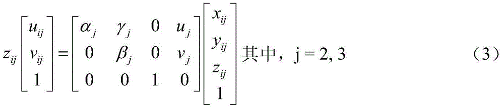 式中αj、βj、γj、uj及vj是成像系统内参数,(uij,vij)是像点的像素坐标。where α j , β j , γ j , u j and v j are the internal parameters of the imaging system, (u ij , v ij ) are the image points pixel coordinates.