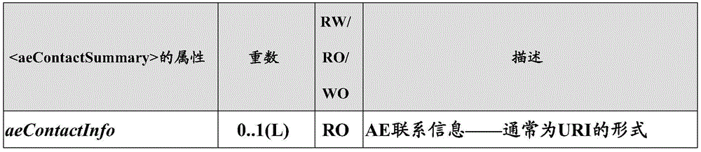 The < aeContactSummary > resource supports the solution proposed with respect to fig. 16. It provides a list of AE contact information for the CSE. Each time an AE contact information is requested to be created or deleted, it is internally updated by the CSE. The resources may be, for example: