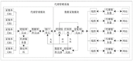 As shown in fig. 1, the agent management module mainly includes an acquisition unit 11, a verification unit 12, a database unit 13, and an interface unit. The collection unit 11 is configured to collect the proxy IP, the verification unit 12 is configured to verify the collected proxy IP, the database unit 13 is configured to persistently store information of the obtained proxy IP, and the interface unit (e.g., http interface) is configured to provide information of the proxy server for the data collection module and modify a score of the proxy server.