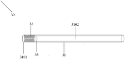 如图11-图13所示,取钳组件30用于将需止血处的使用后已脱落的夹头10取下,包括由前端的用于插入使用后已脱落的夹头10的尾管14的空心段3101和设置于空心段3101后方的实心段3102组成的第二套管31以及设置于尾杆14所在处的贴合于第二套管31的空心段3101的内壁的第二电热丝32。As shown in FIG. 11-FIG. 13, the