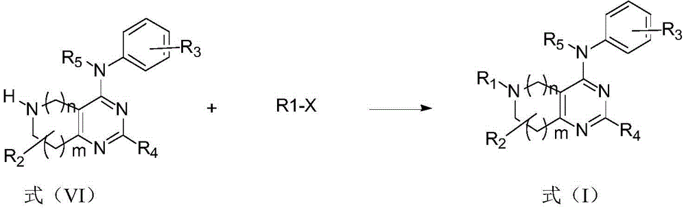 在有机溶剂中,在碱的存在下,式(VI)化合物与R1-X反应生成式(I)化合物;