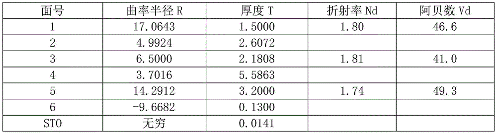 With the development of science and technology, the performance requirement of an optical lens is higher and higher, and a monitoring lens or a vehicle-mounted lens generally needs to meet the requirements of high resolution and low aberration. Resolution can generally be increased by increasing the number of lenses, typically using aspherical lenses to correct for aberrations. In the prior art, high resolution can be obtained by increasing the number of lenses to 6 to 7 or more, but this affects the realization of miniaturization, low cost effect. When the aspheric surface is adopted to correct aberration, if the plastic aspheric surface is adopted, the plastic thermal expansion coefficient is large, so that the problem of defocusing image surface blurring caused by temperature change exists; if a glass aspheric surface is used, the cost is too high.