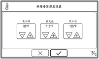加热:水可以被供应并返回到热储存器,如通过与端口相关联的流量控制阀所控制的。由于在一些实施方案中可以只有一个热储存器,因此热储存器温度控制对于两个端口或者用于具有多于两个端口的实施方案的所有端口来说可以是公共的,并且其温度可以从用户界面(诸如可以是默认显示屏的主屏幕)可调节。每个端口可以具有单独的用于治疗参数的设置,包括治疗温度和持续时间以及空气压力,这允许系统向连接到系统的每个包传送定制的治疗。Heating: Water can be supplied and returned to the thermal storage as controlled by a flow control valve associated with the port. Since there may be only one thermal reservoir in some embodiments, thermal reservoir temperature control may be common to both ports, or all ports for embodiments with more than two ports, and its temperature may vary from The user interface, such as the home screen, which may be the default display, is adjustable. Each port can have individual settings for therapy parameters, including therapy temperature and duration and air pressure, which allows the system to deliver customized therapy to each package connected to the system.