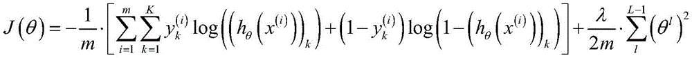 And finally obtaining the value of the node of the last layer, and measuring the difference between the predicted value and the reference value by using a cost function, wherein the cost function is as follows: