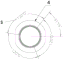 Fig. 9 is a schematic diagram showing the positions of the starting points of the 3-start threads of the thread structure required for positioning the circular thread product shown in fig. 1a to 1g on the lower inner peripheral wall of the thread forming sleeve when the vertical groove shown in fig. 6 is used as the angular processing reference of the thread structure in the circumferential direction, and 120 degrees indicated by S in fig. 9 are used as the angular dimensions of the starting points of the threads. Fig. 10 is a schematic diagram showing a position of a starting point of a thread structure to be processed to be engaged with the thread bush in the thread removing mold on the upper outer circumferential wall of the thread forming bush when the vertical groove shown in fig. 6 is used as an angle processing reference in the circumferential direction of the thread structure, 120 degrees indicated by T in fig. 10 are used as an angle size of the starting point of the thread, and 3 120 degrees in fig. 10 correspond to 3 threads to be processed on the lower inner circumferential wall of the thread forming bush.