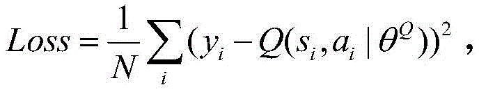 c2, in the Critic module Q network, adopting DQN method to evaluate the action taken by the actor module, adopting the convolution neural network to simulate the Q function Qμ(st,at)=E[r(st,at)+γQμ(st+1,μ(st+1))]The loss function is defined asWherein, yiIs based on the next state si+1And the next action ai+1Target network Q value, yi=ri+γQ′(si+1,μ′(si+1|θμ′)|θQ′);