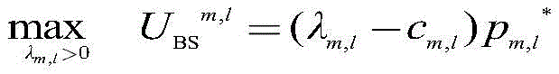 基站向各用户端出售功率,卖方的效用函数为:UBS m,l=(λm,l-cm,l)pm,l。The base station sells power to each user, and the seller's utility function is: U BS m,l =(λ m,l -c m,l )p m,l .