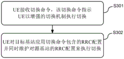 在上述切换方法中,可以是,UE对目标基站应用所述切换命令中包含的一部分信息元素所对应的RRC配置包括下述操作中的至少一项:对目标基站建立一个媒体介入控制层MAC实体;对目标基站建立一个物理层实体;根据无线资源配置公共信息元素配置目标基站对应的低层;根据移动性控制信息元素配置目标基站对应的低层;根据无线资源配置专用信息元素执行对目标基站的无线资源配置过程;派生出用于目标基站通信的密钥;生成RRC连接重配置完成消息并发送;应用所述切换命令包含的信息元素中除上述各操作所对应的信息元素、辅小区添加修改列表信息元素和其他配置信息元素即otherconfig信息元素之外的信息元素所对应的RRC配置,UE在所述切换成功完成之后对目标基站应用所述切换命令中包含的其他信息元素所对应的RRC配置包括:在所述切换命令中包含辅小区添加修改列表信息元素的情况下,执行对目标基站的辅小区的添加或修改;在所述切换命令中包含otherconfig信息元素的情况下,执行otherconfig信息元素所对应的配置过程。In the above handover method, it may be that the UE applies the RRC configuration corresponding to a part of the information elements included in the handover command to the target base station, including at least one of the following operations: establishing a media intervention control layer MAC entity for the target base station ; establish a physical layer entity for the target base station; configure the lower layer corresponding to the target base station according to the radio resource configuration common information element; configure the lower layer corresponding to the target base station according to the mobility control information element; Resource configuration process; derive a key used for communication with the target base station; generate an RRC connection reconfiguration complete message and send it; apply the information elements included in the handover command to the information elements corresponding to the above operations, and add and modify the list of secondary cells The information element and other configuration information elements, that is, the RRC configuration corresponding to the information elements other than the otherconfig information element. After the handover is successfully completed, the UE applies the RRC configuration corresponding to the other information elements contained in the handover command to the target base station, including: : when the handover command contains the secondary cell addition and modification list information element, execute the addition or modification of the secondary cell of the target base station; when the handover command contains the otherconfig information element, execute the otherconfig information element. corresponding configuration process.
