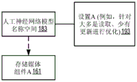 For example, the neuron output namespace 187 may be a memory/storage partition/configured for external output data provided from an Artificial Neural Network (ANN) 125. Namespace optimization setting 192 optimizes memory operations in neuron output namespace 187 according to a data usage pattern of external output data (e.g., improving endurance of periodically overwriting data by random read/write access).