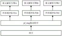 For example, in practical applications, a driver, such as pf _ ring, DPDK (Data Plane Development Kit), etc., is usually installed in a server, and the server performs packet collection based on the driver and writes the collected packet into a lock-free buffer provided by the driver. The server may have several message parsing engines corresponding to different protocol stacks, and the driver provides a lock-free buffer for each message parsing engine. When the server performs service processing of an application layer, the message analysis engine can call a driver to collect messages, read the messages from the corresponding lock-free buffer area, perform network layer message analysis, transmission layer message analysis and application layer message analysis on the read messages according to a protocol stack of the message analysis engine, and then provide the messages for the application layer to perform service processing.