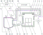 Referring to fig. 1, 2, 3 and 4, the control system includes a start control panel 21 and a temperature controller 19, wherein the temperature controller 19 is provided with a switch S1 and a switch S2, the switch S1 is electrically connected to the sixth electric valve 14, and the switch S2 is electrically connected to the first electric valve 10, the second electric valve 5, the third electric valve 20, the fourth electric valve 13, the fifth electric valve 16 and the fan 11 in parallel; the start control panel 21 is provided with a switch S3 and a switch S4, the switch S3 is electrically connected to the third electric valve 20, and the switch S4 is electrically connected to the electric three-way valve 6. The specific control and use principle is as follows: