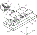 The material of the tool rest 7 is alloy steel, and 40CrNi is adopted in the embodiment; quenching and tempering raw materials, wherein the quenching and tempering hardness is HRC 28-32, machining the quenched and tempered base material to form a geometric composition element of a tool rest 7, keeping a screw hole 6 and a tool rest hole 9 without machining, ensuring the mutual position precision between each plane of a cuboid, and requiring IT8 for the machining precision grade; grinding each plane of the machined tool rest 7 substrate, wherein the mutual position precision grade of the grinding process requires IT6, and after the grinding process, the flash and burr are manually removed, and the magnetic and corrosion resistant treatment is carried out for standby;