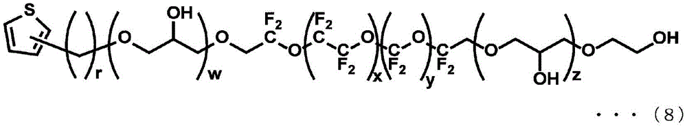 in the formula (8), x and y are average polymerization degrees and represent 1-20 respectively; z represents 1 or 2, w represents 2 or 3, and r represents an integer of 1 to 3.