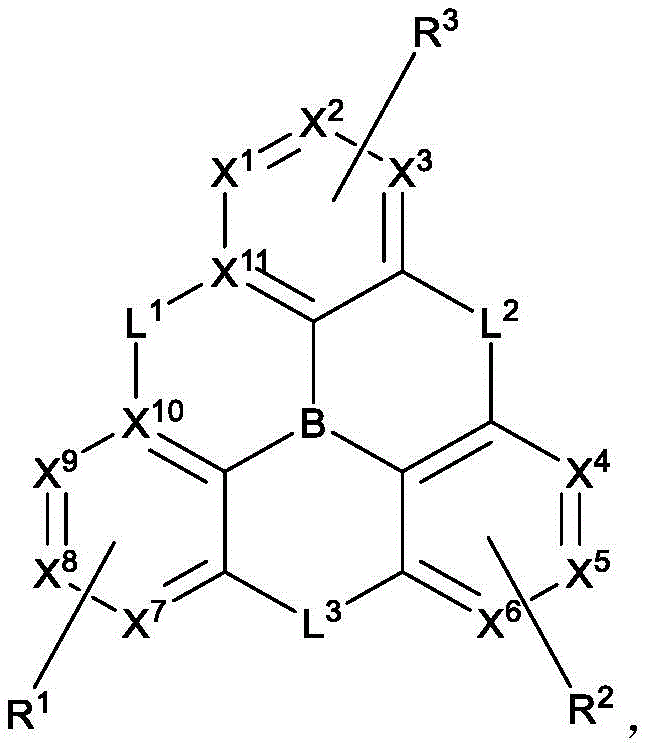 - H10K85/322—Metal complexes comprising a group IIIA element, e.g. Tris (8-hydroxyquinoline) gallium [Gaq3] comprising boron