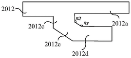 Further, with reference to fig. 2E to fig. 2F, the branch 2012b further includes a third branch 2012E located between the first branch 2012c and the second branch 2012d, and the third branch 2012E is curved or linear, so that the first branch 2012c and the second branch 2012d are smoothly connected. When the third branch portion 2012e is linear, a second included angle α 2 is formed between the third branch portion 2012e and the first branch portion 2012c, and a third included angle α 3 is formed between the third branch portion 2012e and the first branch portion 2012 c. The second included angle α 2 and the third included angle α 3 are both obtuse angles, as shown in fig. 2I, which is a partially enlarged view of the gate layer 2012 provided in the embodiment of the present invention.